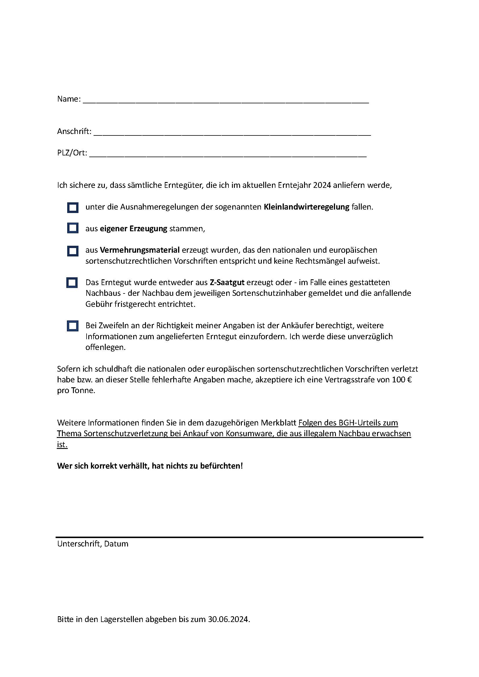 Durch ein aktuelles Urteil des Bundesgerichtshofs (BGH) sind alle Agrarhändler dazu verpflichtet sich ab dieser Ernte von ihren Kunden vor der Ernte versichern zu lassen, dass ihr abgeliefertes