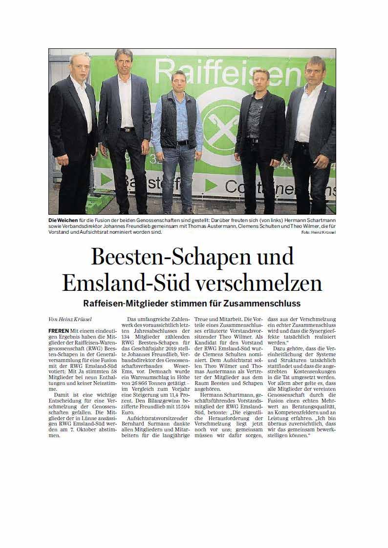 Beesten-Schapen und Emsland-Süd verschmelzen