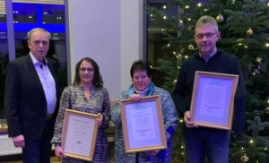 Geschäftsführer Hermann Schartmann, Tatjana Roling (25 Jahre), Margret Stermann (40 Jahre), Thomas Brüning (40 Jahre).