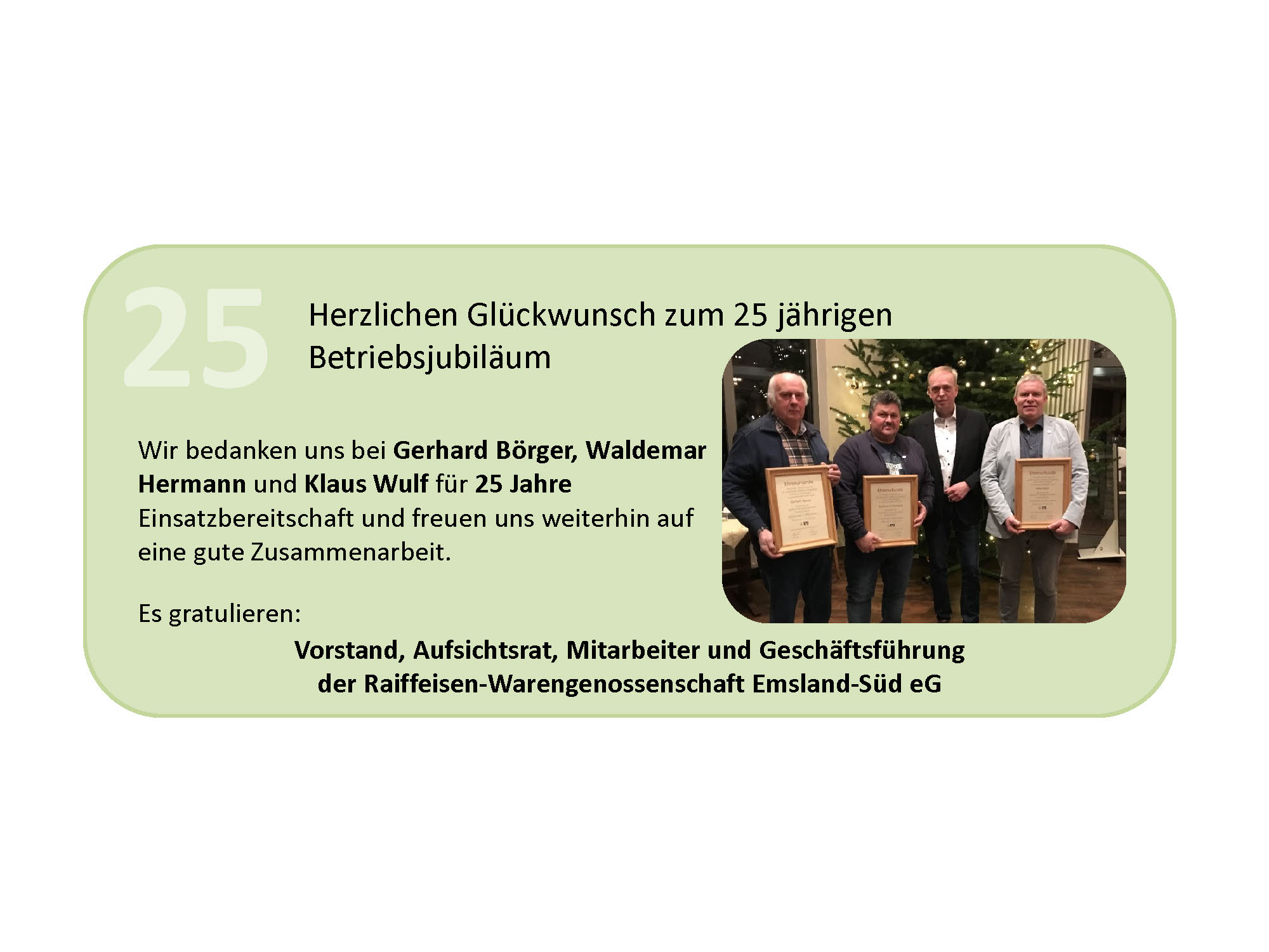 Unsere diesjährige Weihnachtsfeier wurde zum Anlass genommen, verdiente Mitarbeiter für Ihre 25-jährige Betriebszugehörigkeit zu ehren.