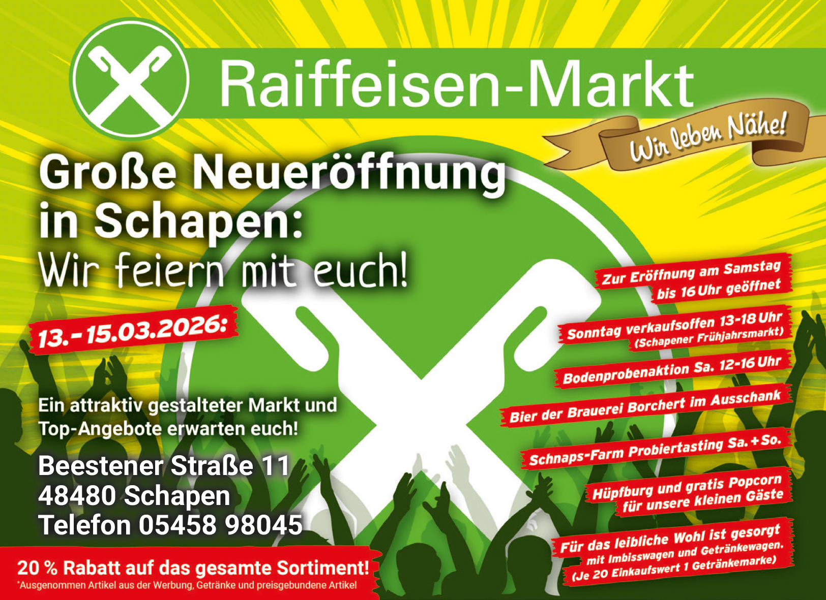 Raiffeisen-Markt Schapen feiert vom 13. bis 15. März Neueröffnung