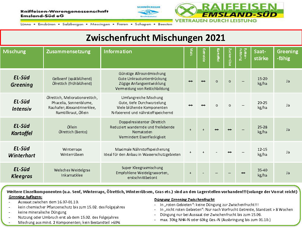 Zwischenfrucht Mischungen 2021